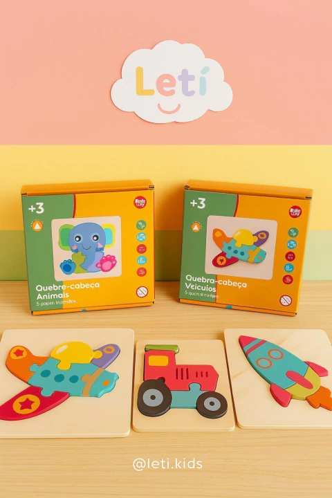 Nossos kits de quebra-cabeça de madeira são ideais para estimular o raciocínio, a coordenação motora e a concentração dos pequenos!
