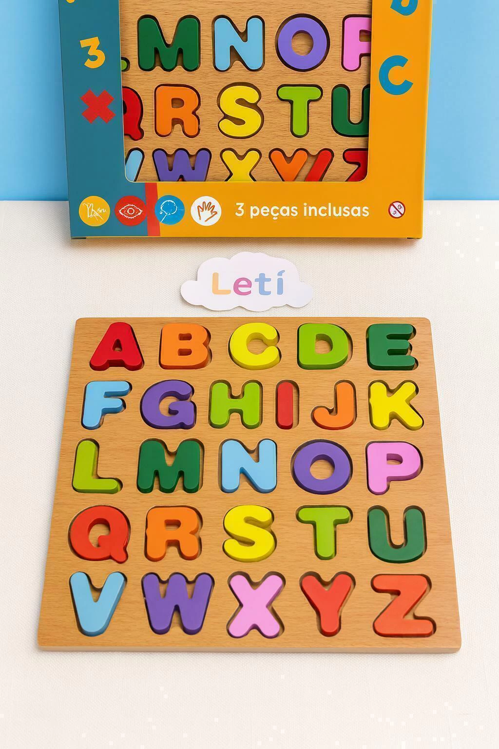 Com peças coloridas e fáceis de manusear, o jogo propõe atividades que incentivam o aprendizado de números, letras e formas através da associação com as imagens.